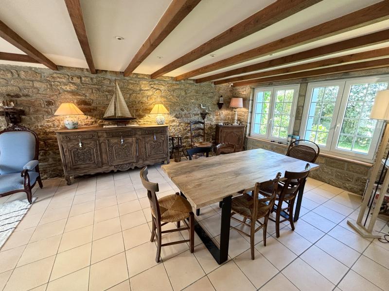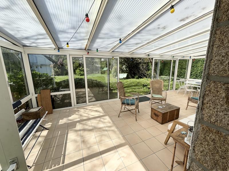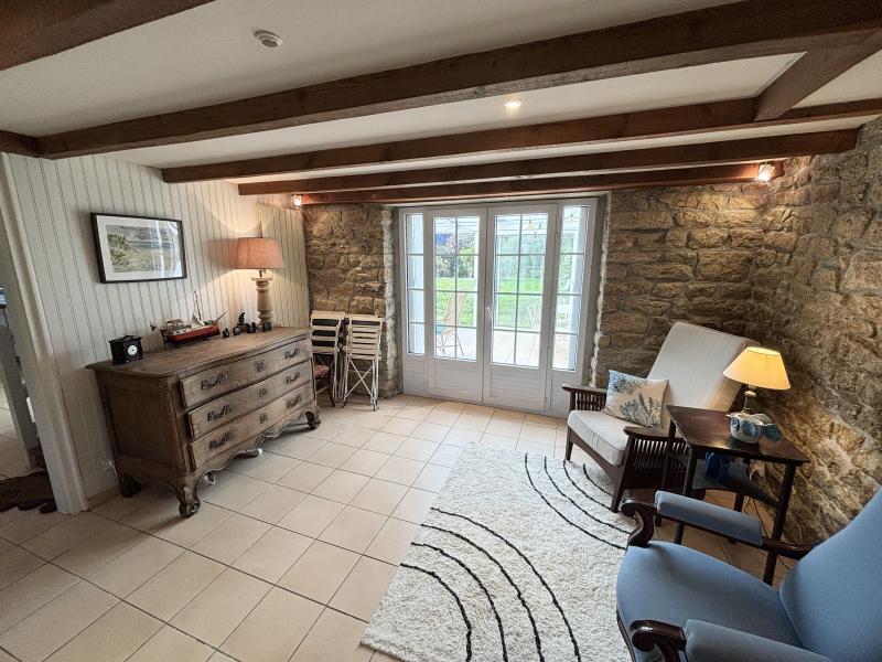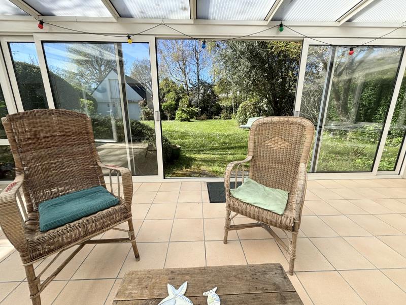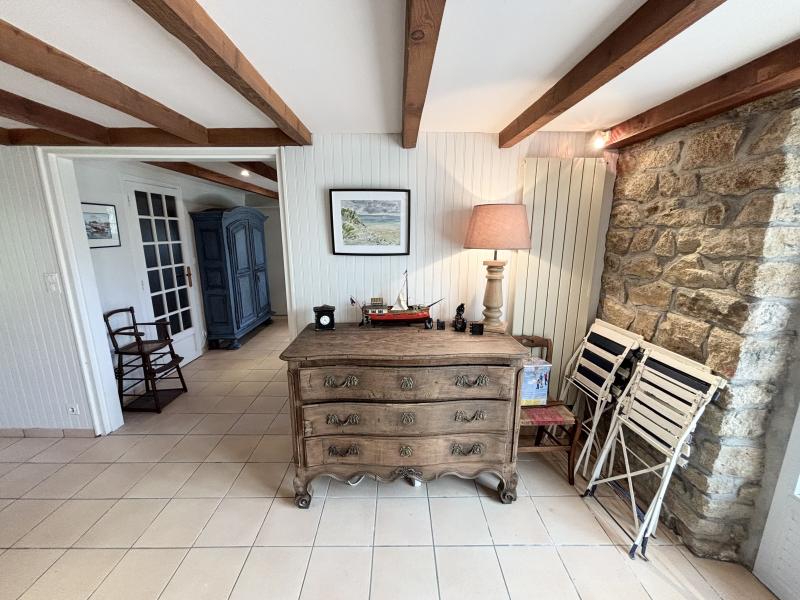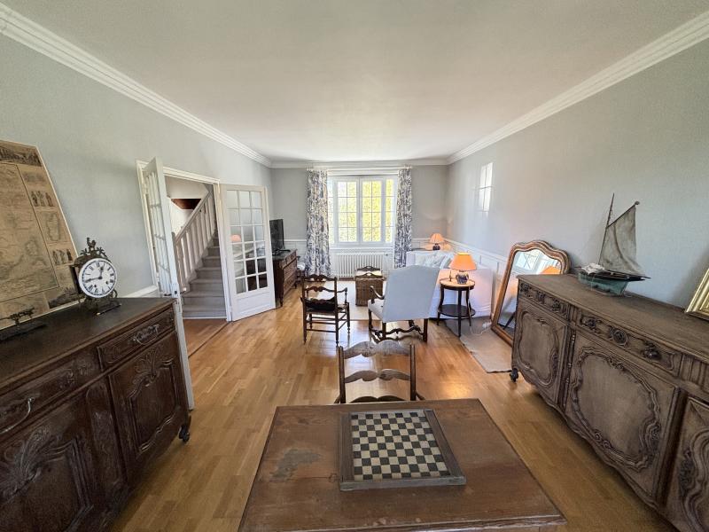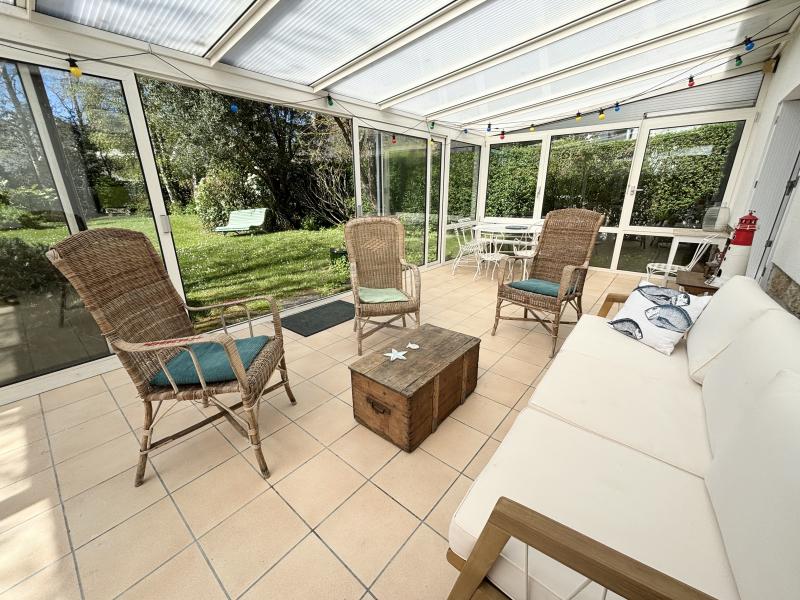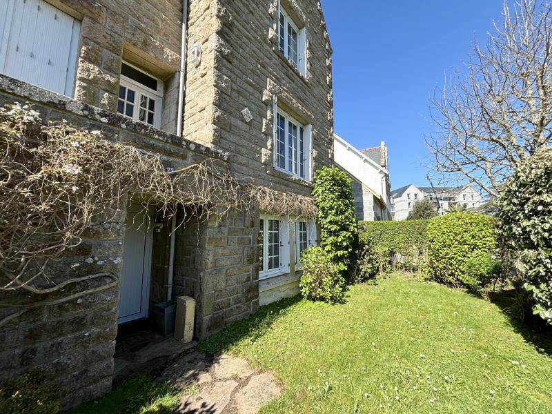 Grande maison de famille des années 30, rénovée en 1990, sur jardin clos de 1500m2 environ, entre la plage de Langoz et le port . Exposition Ouest. Stationnement des voitures dans le jardin.