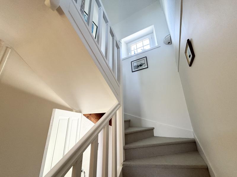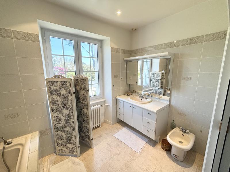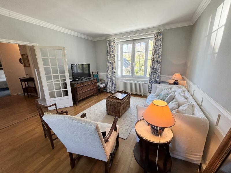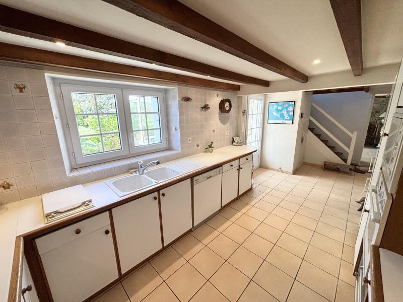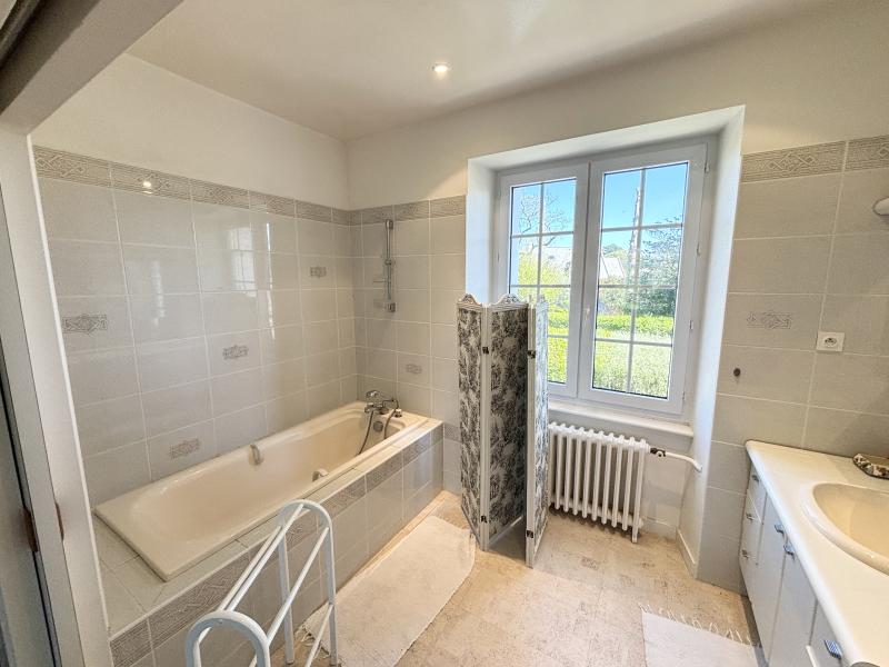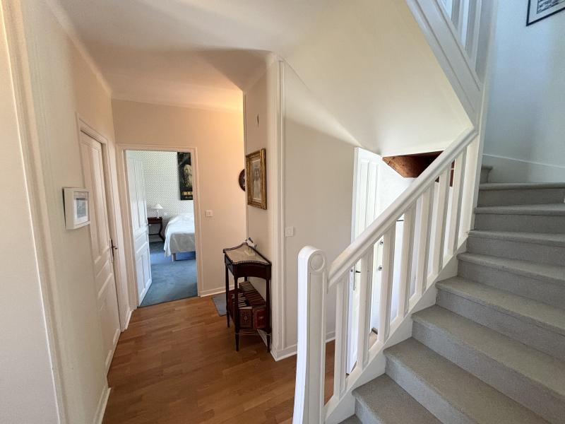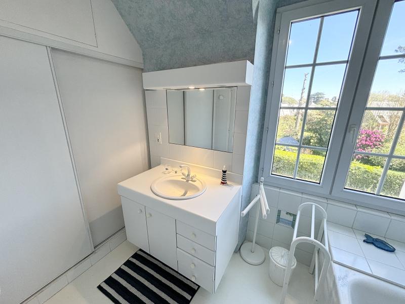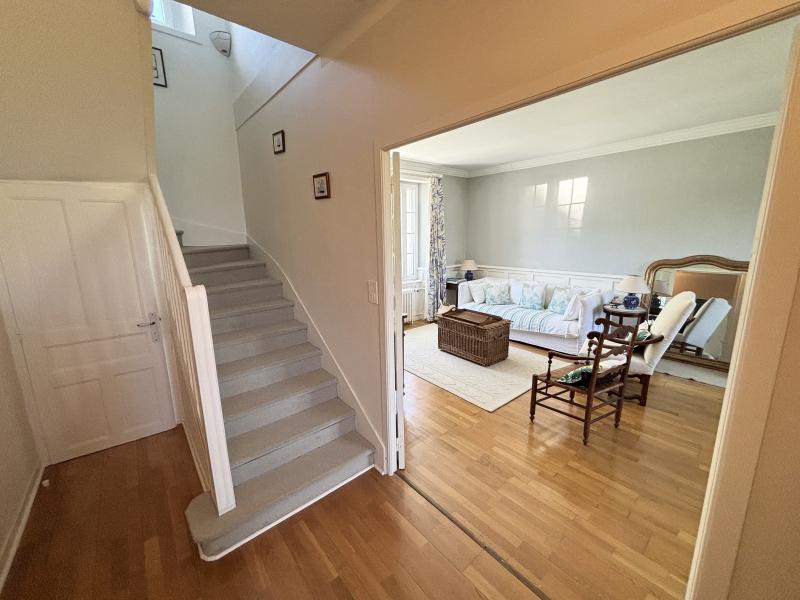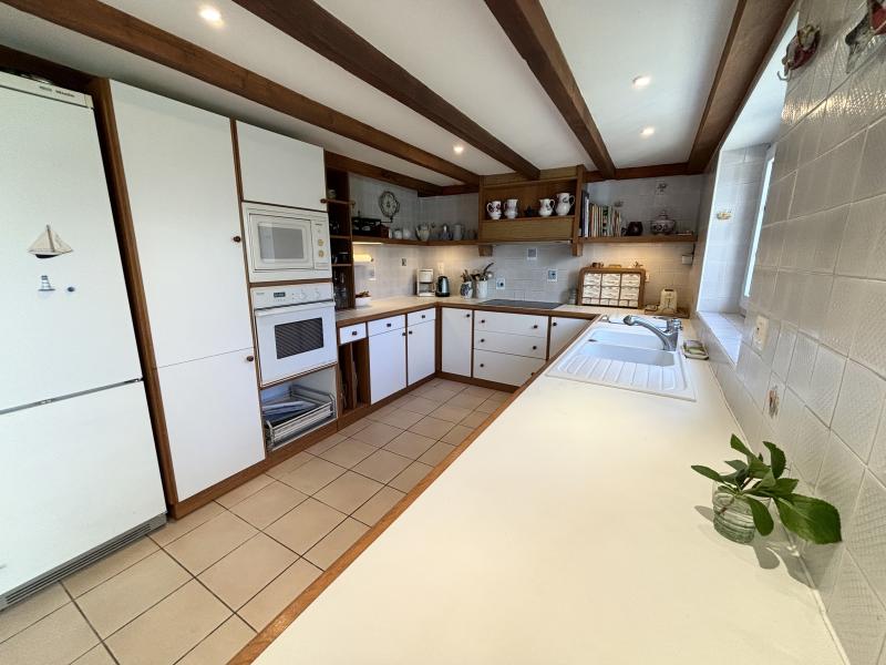 Grande maison de famille des années 30, rénovée en 1990, sur jardin clos de 1500m2 environ, entre la plage de Langoz et le port . Exposition Ouest. Stationnement des voitures dans le jardin.
