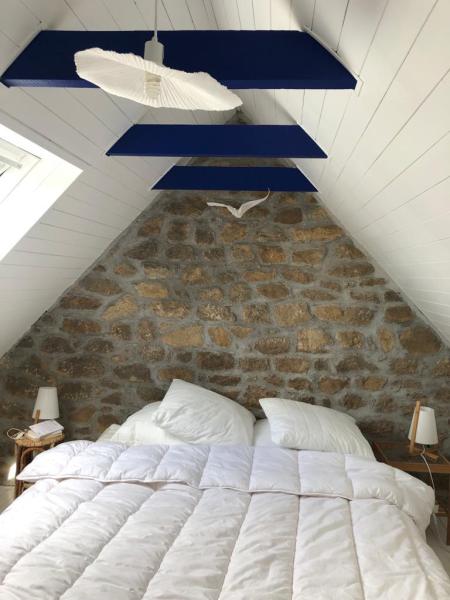 – Une chambre mansardée avec un lit pour deux personnes 160×200 : literie neuve