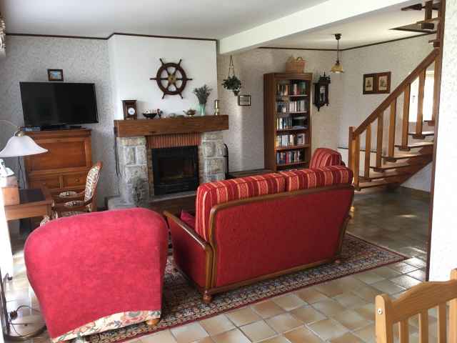 Petite villa au calme, en bordure du Steïr, bénéficiant d'une jolie vue, entourée d'un jardin de 1500 m2, non clos mais bordé de haies vives, située dans un environnement calme, à 1,5km du centre et du port de Lesconil