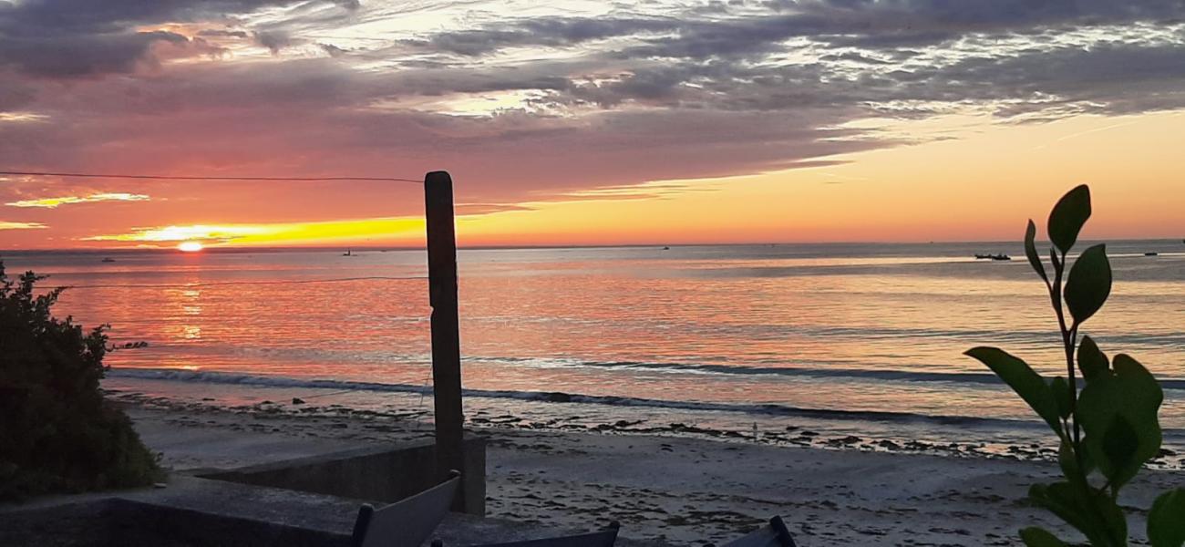 EXCELLENTE SITUATION pour cette maison fonctionnelle, la plage en bas du jardin. Vue mer de la terrasse .