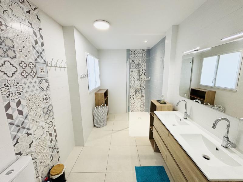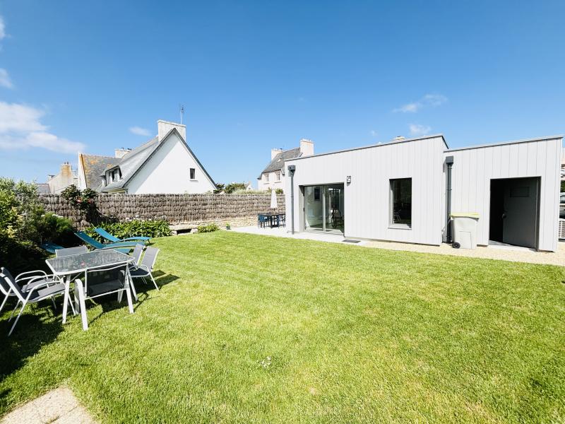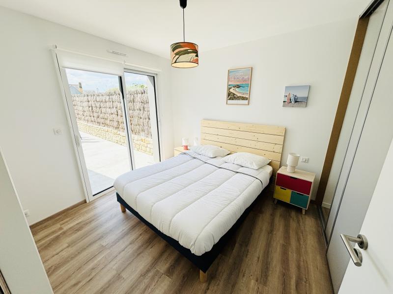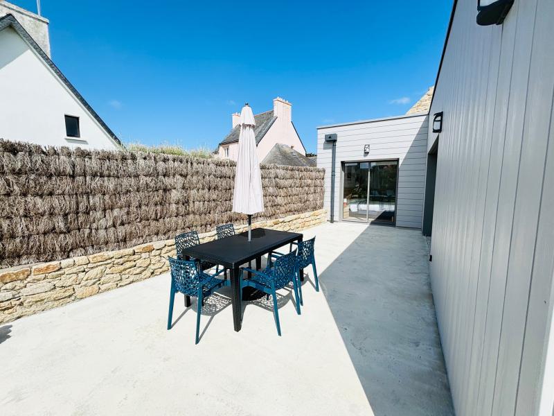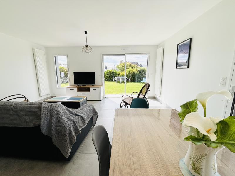 PETITE VILLA DE PLAIN PIED RECENTE SUR JARDIN CLOS , mitoyenne par l'arrière (cour commune sur l'arrière) , située à proximité des plages et des commerces de Saint Guénolé . Exposition Sud . Stationnement du véhicule dans la cour privée.