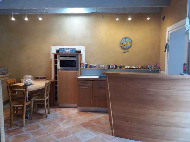 – Pièce à vivre (40m2) avec partie cuisine aménagée