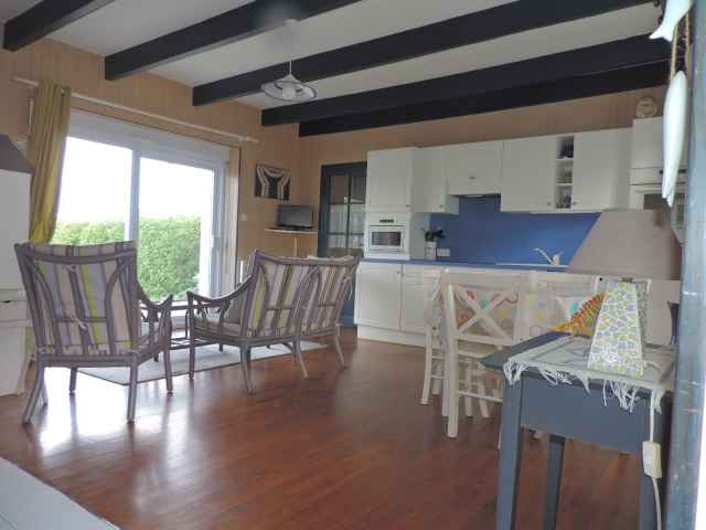 – Pièce à vivre avec partie cuisine aménagée, ouvrant sur la terrasse et le jardin côté mer