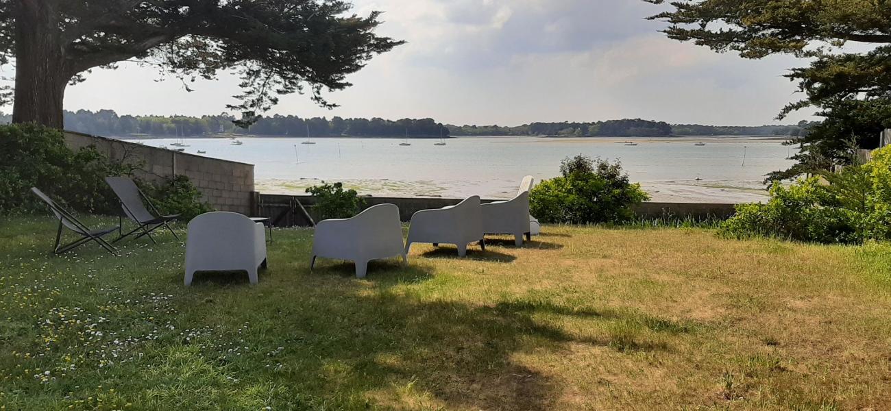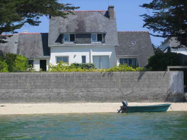 Maison néo Bretonne entourée d'un jardin clos, située directement sur le côté Ouest de l'Ile Tudy, face à la rivière. Vue imprenable ! Possibilité de rentrer les voitures dans le jardin. Local de rangement pour vélos, surfs, etc..