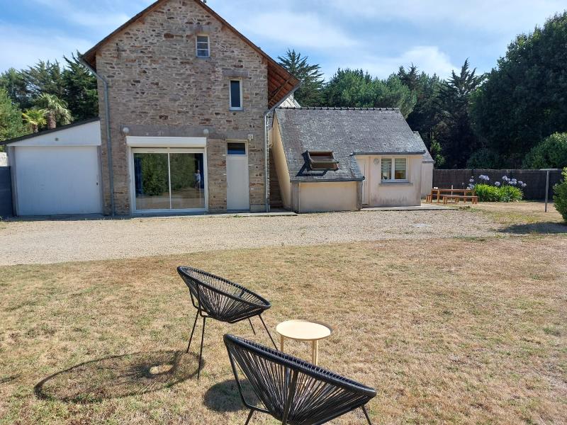 Charmante maison de vacances située dans le Triangle d'Or de Beg Meil, à 250m de la plage des Dunes, sur jardin clos de 700m2. Exposition Est.