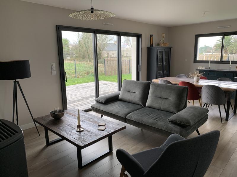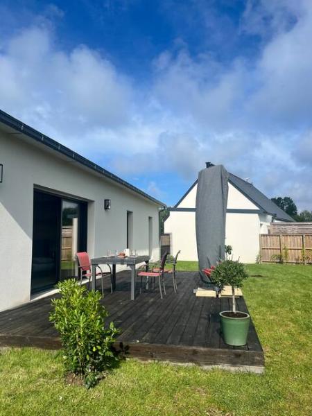 MAISON DE VACANCES de plain pied récente (surface habitable: 95m2) , entourée d'un jardin non clos de 500m2 environ , située rue de Tréguido à Larvor, à 600m du Port de Larvor et de la plage du Poulluen. La belle plage des Sables Blancs est à 1 km.
