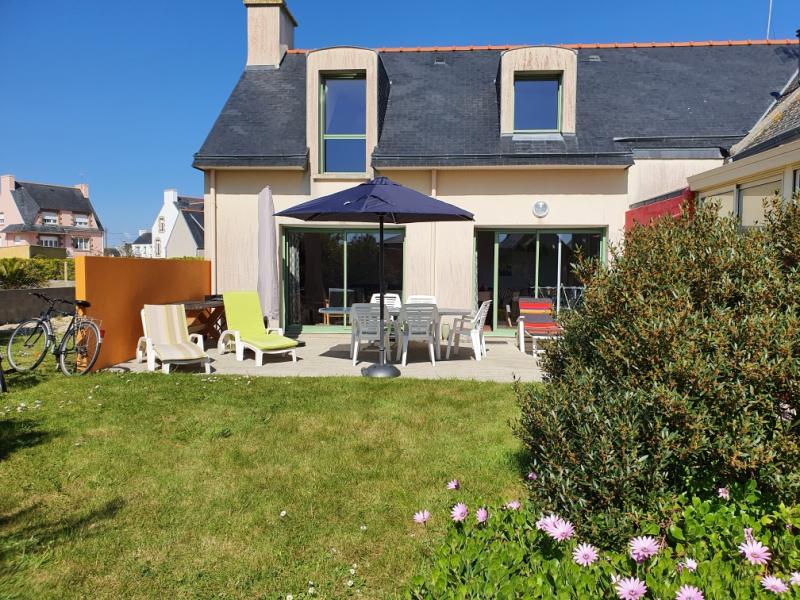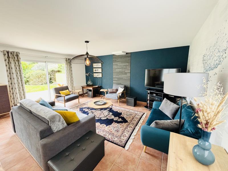 Maison de vacances réagencée début 2022, sur jardin de 750m2, située à quelques pas du phare d'Eckmühl, à Saint Pierre. Exposition Sud/Ouest. Surface habitable: 130m2 environ.