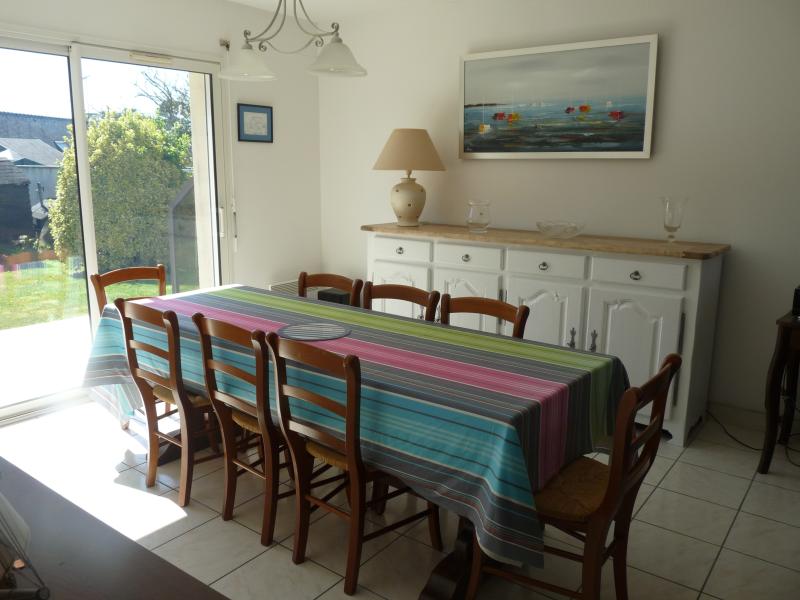 Maison de vacances sur jardin clos de 700m2 environ, située au calme à quelques pas de la superbe plage de Lodonnec. Exposition Sud.