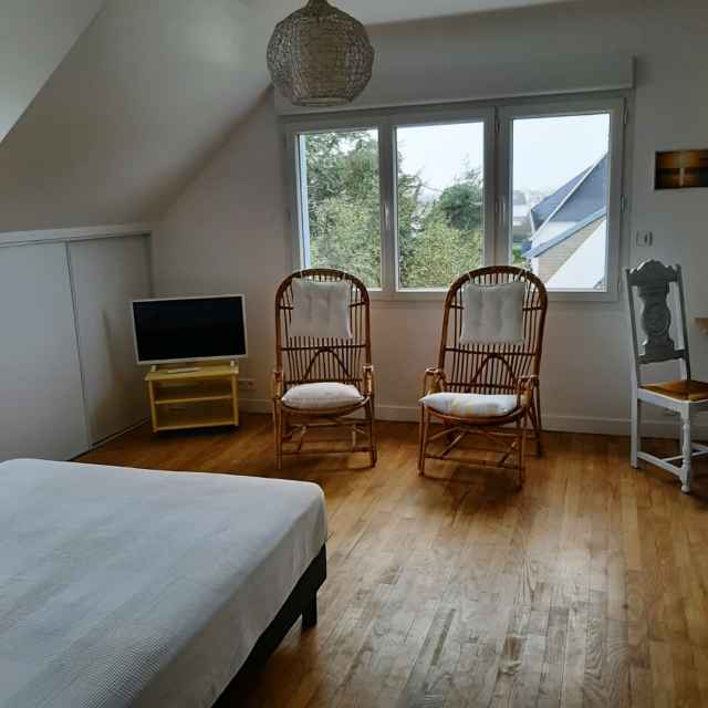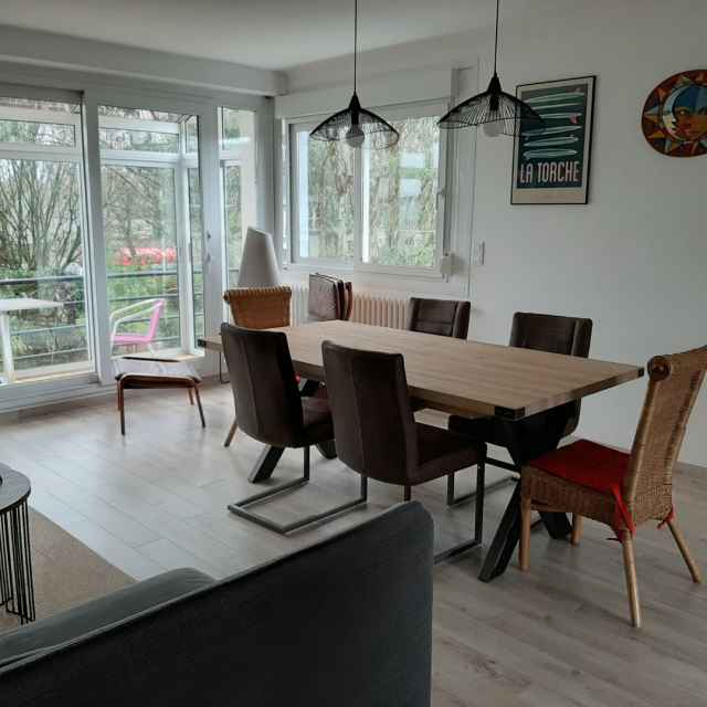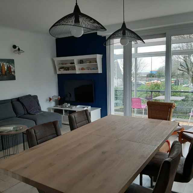 Excellente location spacieuse, idéale pour des vacances plage ou voile. Aménagement de qualité à l'état neuf. Petite vue mer du séjour.