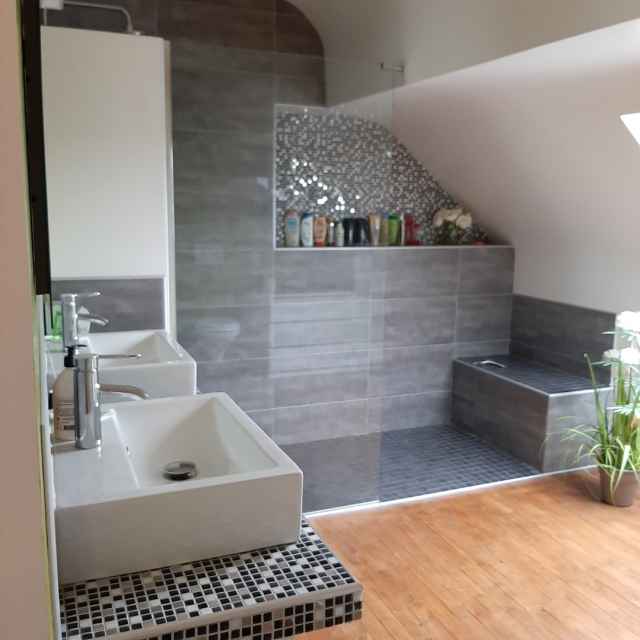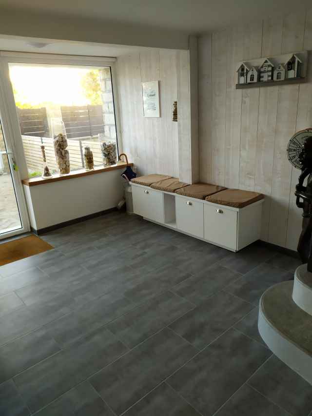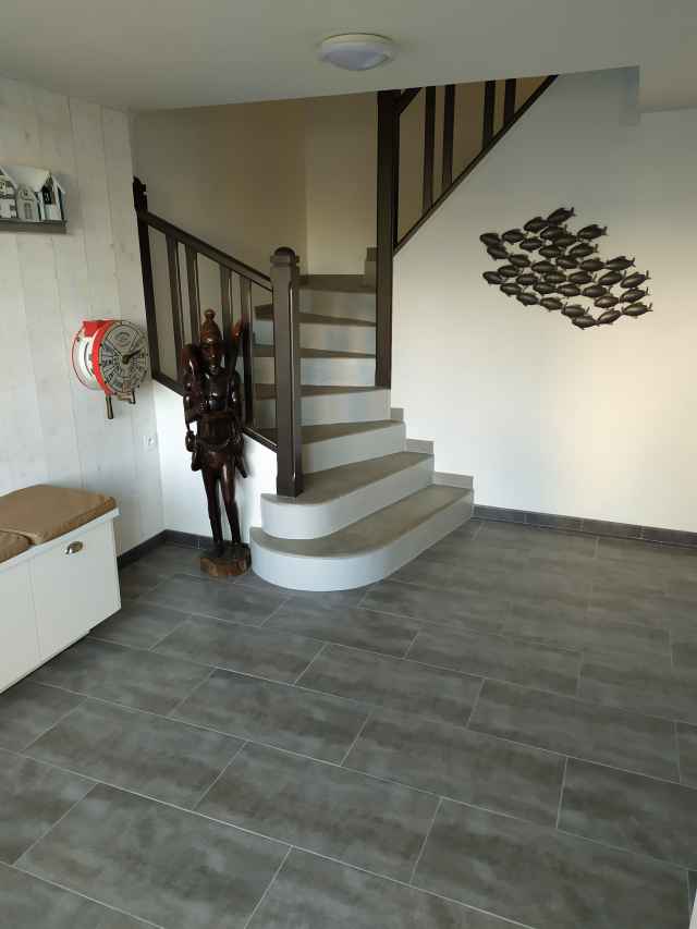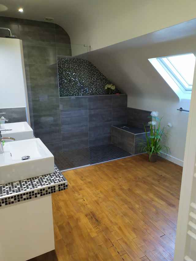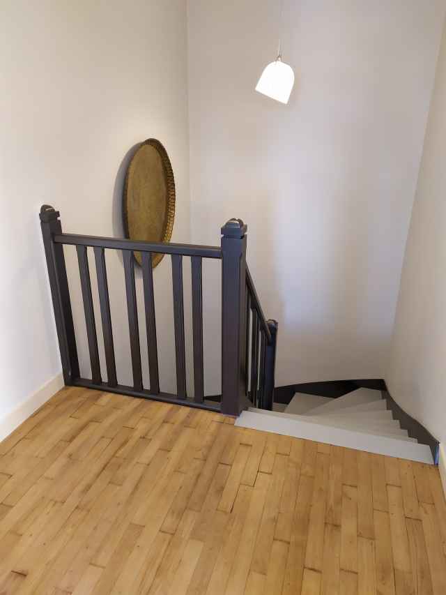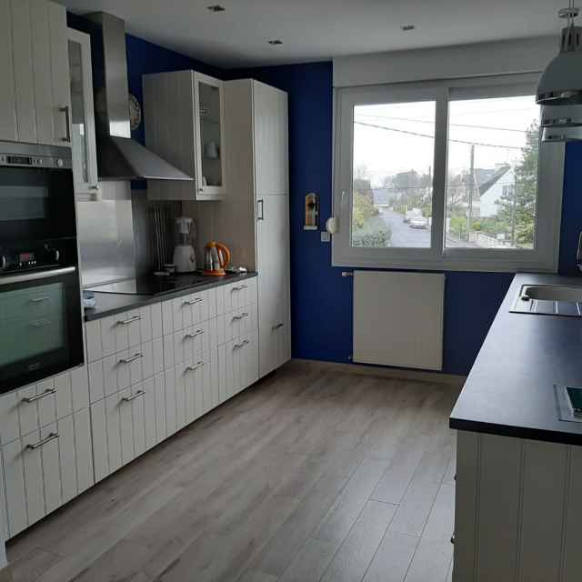 – Grande pièce à vivre avec partie cuisine aménagée, partie salon, poêle à bois