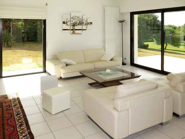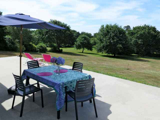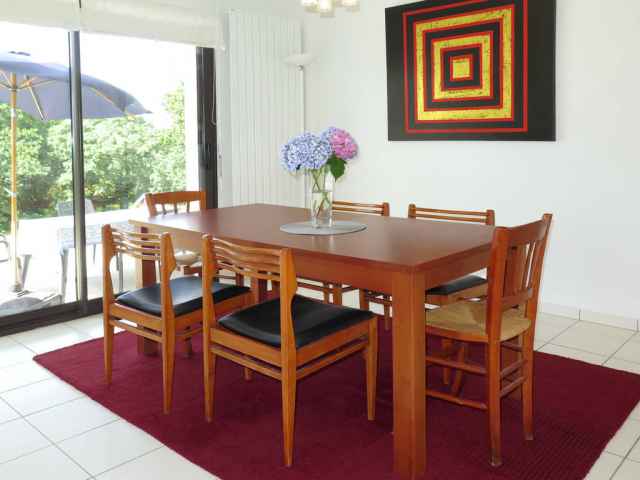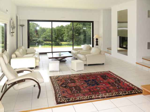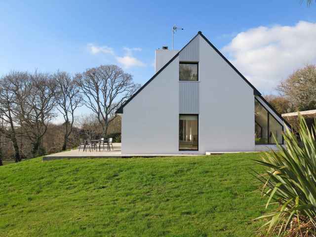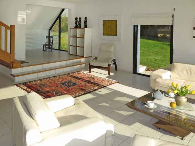 Villa contemporaine sur très grand jardin de 6000 m2 à l'état naturel, située au Bereven, quartier calme et résidentiel de Sainte Marine. Exposition Sud. Plage à 900m par chemin piétonnier, port à 1,6km