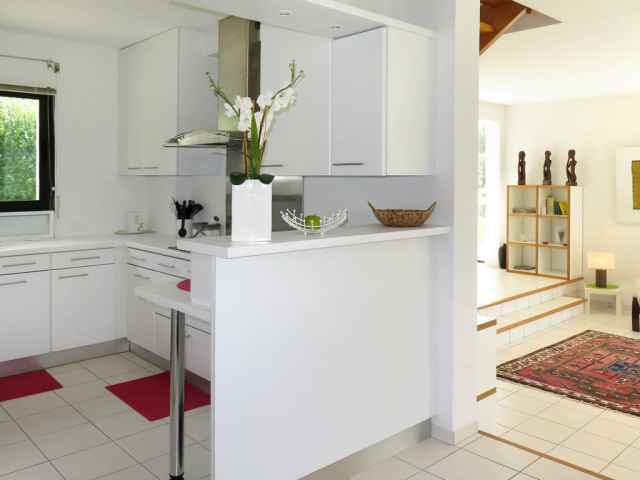 – Grand séjour avec partie repas, cuisine aménagée et salon en fosse (1 marche)