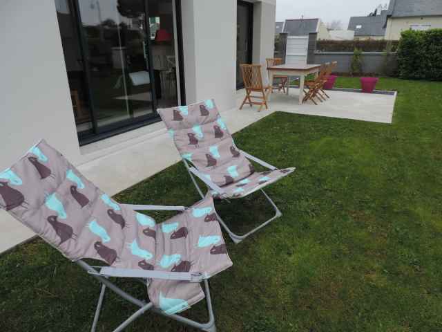 VILLA RECENTE, sur jardin clos de 400m2 environ, située rue des Iles, à deux pas de la plage, dans un quartier tranquille . Exposition Est. Surface habitable: 130m2 environ