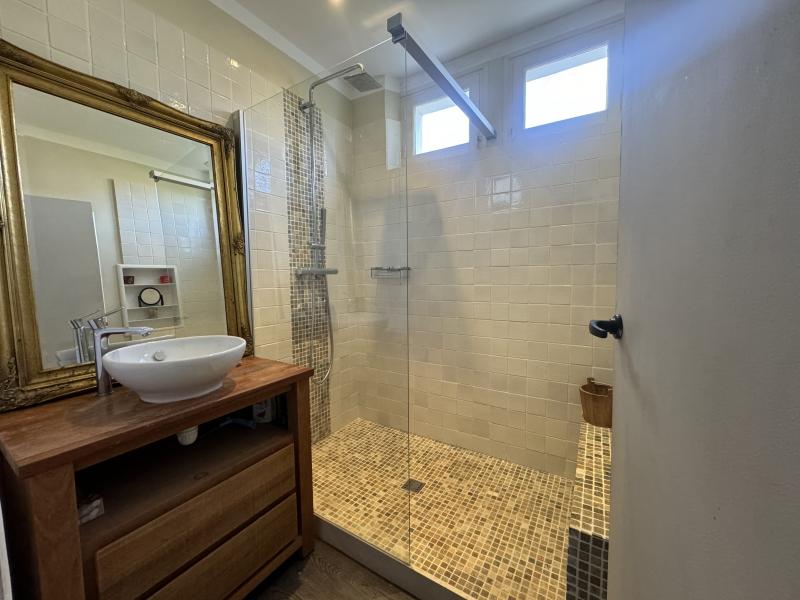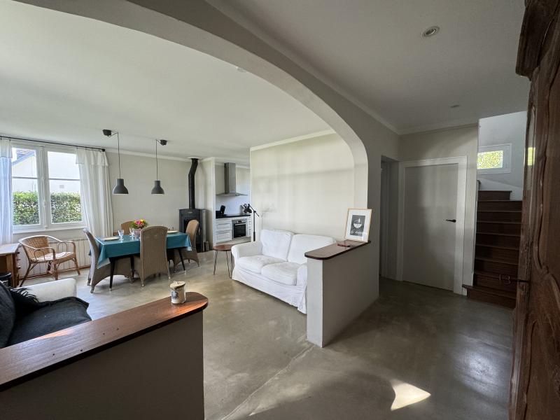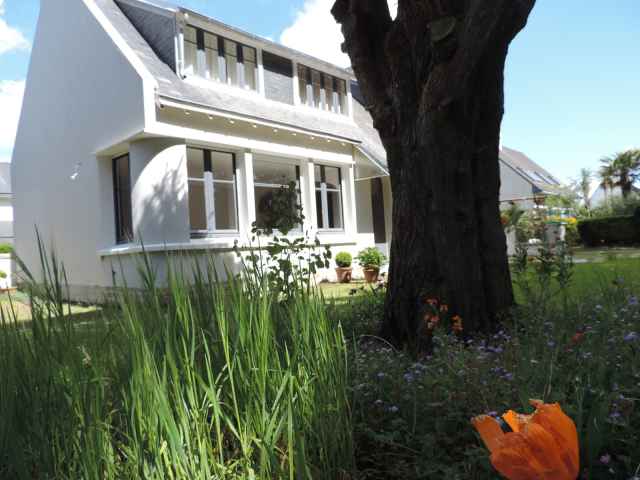 Rénovée intégralement de façon contemporaine, sur jardin clos de 450m2. Seul le chemin de dunes sépare la villa de la plage.Stationnement de la voiture sur le chemin douanier. Exp. Est, jardin exposé Sud.