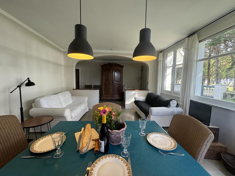 – Belle pièce à vivre avec partie cuisine aménagée, poele suédois: vue mer