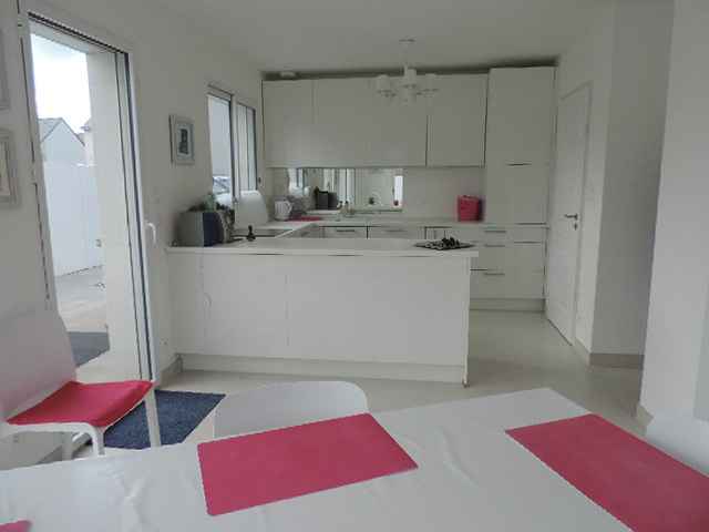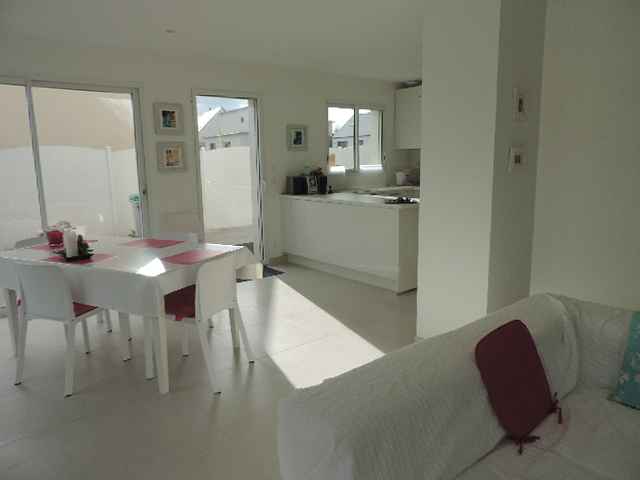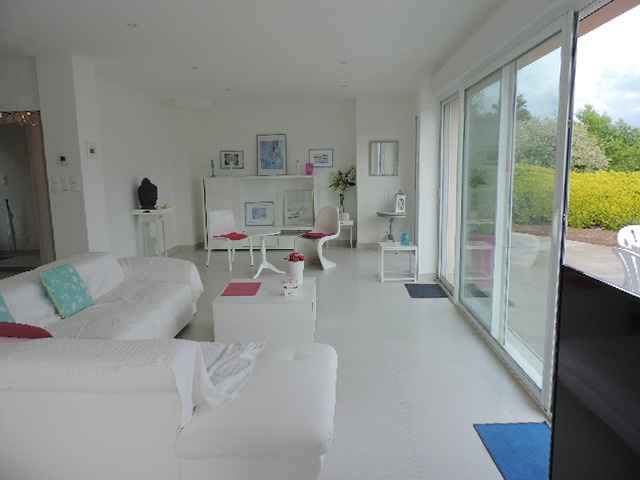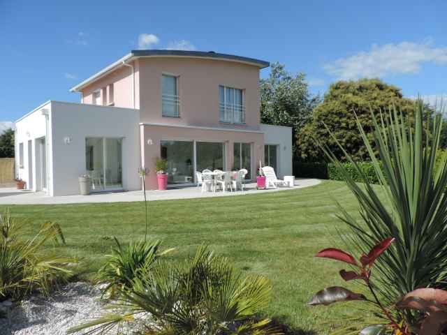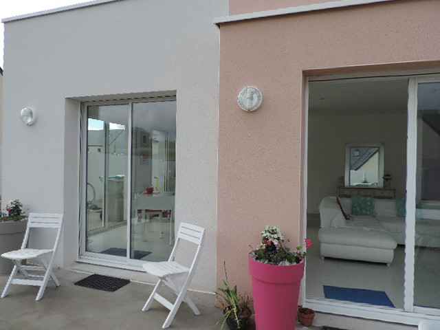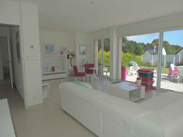 Belle villa neuve (2014) et contemporaine sur jardin de 600m2, située au calme dans un petit lotissement récent en campagne à Combrit. Exp. Sud