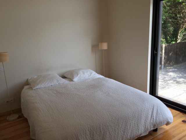 Belle villa contemporaine de plain pied avec jardin clos, située dans le triangle d'Or de Saint Guénolé, à deux pas de la plage de Pors Carn , de ses écoles de surf et de sa célébrissime paillote de plage "Chez Marie Cath". Exposition Sud. Surface habitable: 130m2 environ
