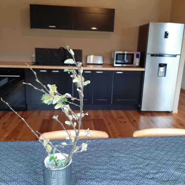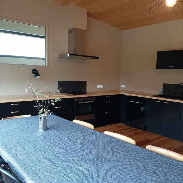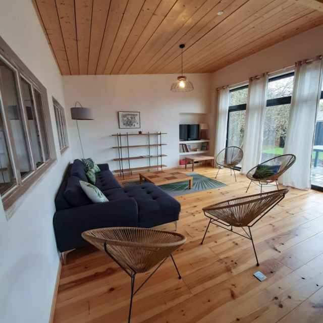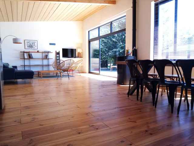 – Grande pièce à vivre (53m2) avec partie cuisine aménagée, ouvrant sur terrasse bois