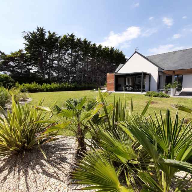 Belle villa neuve sur jardin clos de 900m2 avec jacuzzi située à Penmarc'h à quelques pas du port de Kérity, dans un quartier calme. Exposition Sud. Surface habitable: 140m2 environ. Plage de Port de Bouc à 950m