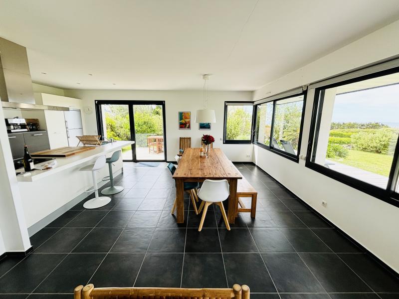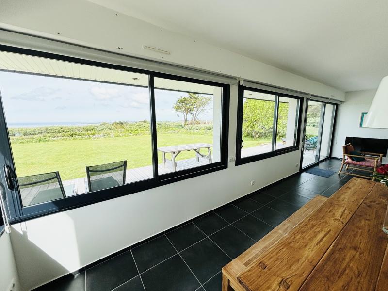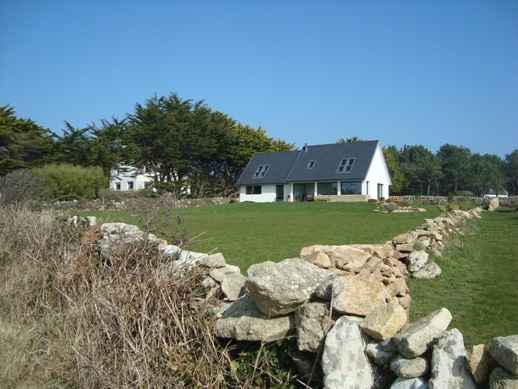 Villa actuelle, très lumineuse, sur terrain à l'état naturel de 3000m2, clos par murets de pierres sèches. Vue exceptionnelle sur la baie d'Audierne et sur l'entrée de son port.Exp. Sud/Ouest. Endroit particulièrement calme.