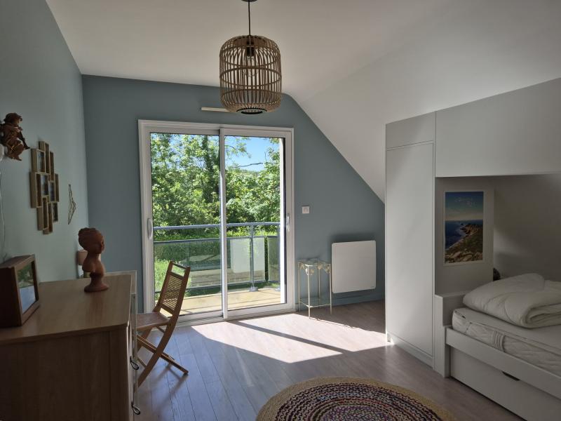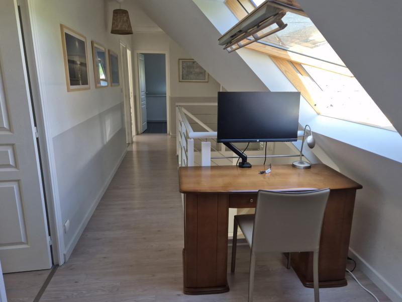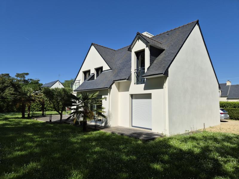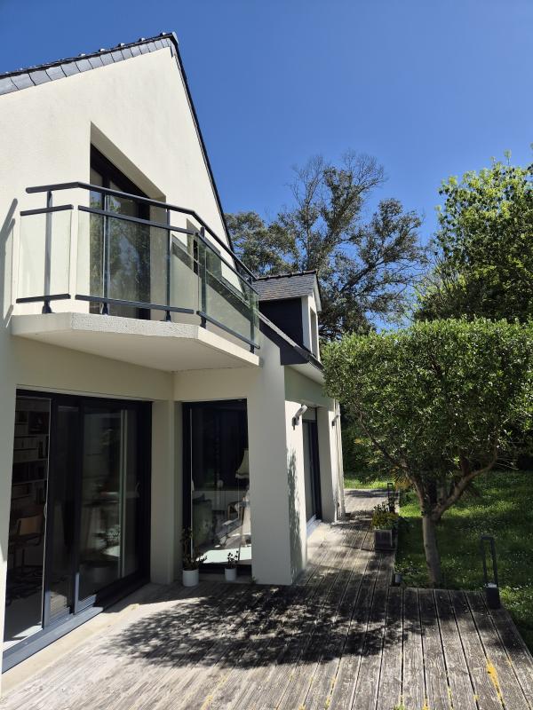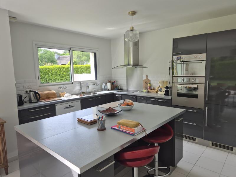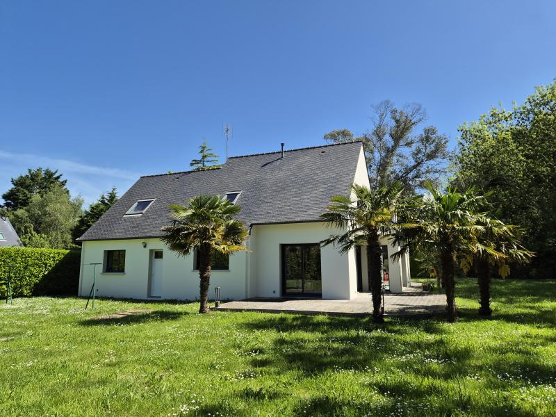 VILLA SPACIEUSE entourée d'un jardin clos de 2500m2 environ, située dans un environnement calme et verdoyant, au lieu dit Kerescant, proche de la chapelle de Plonivel. Stationnement des véhicules dans le jardin (3 maxi). Exposition Sud. Surface habitable: 200m2 environ.