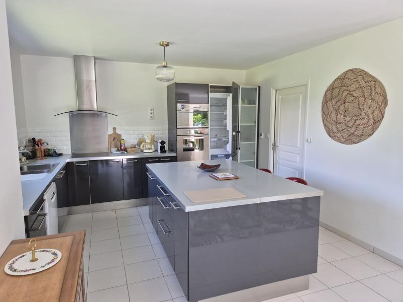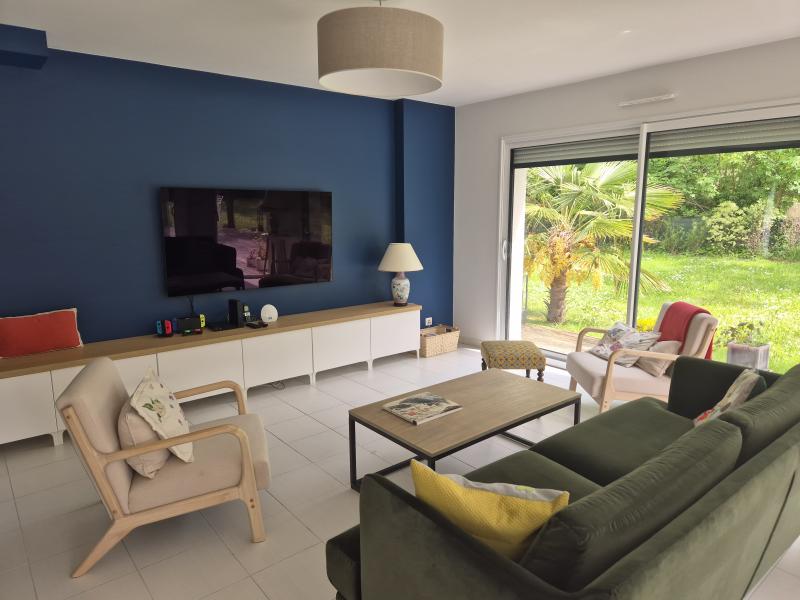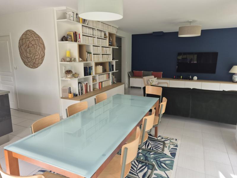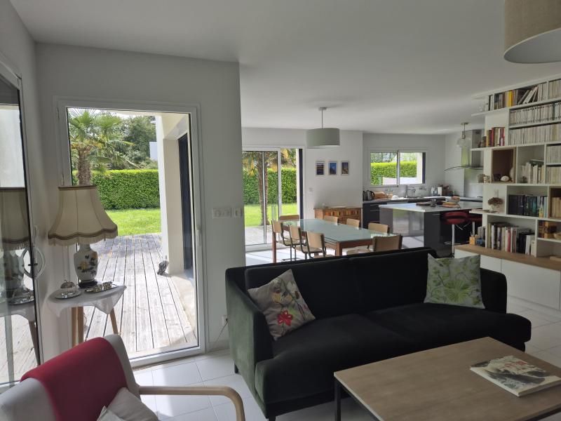 – Grand séjour en L avec partie cuisine aménagée, ouvrant sur la terrasse