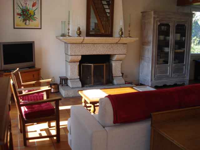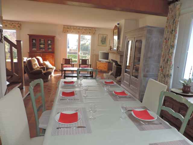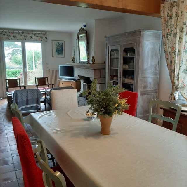– Grande pièce à vivre avec partie salon, repas avec cheminée